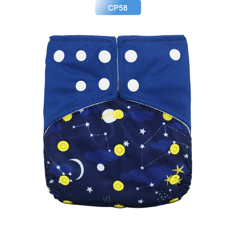Pañal de bolsillo de tela de gamuza ajustable de talla única suave cómodo impermeable PUL impreso película de PE transpirable lavable bebés adultos